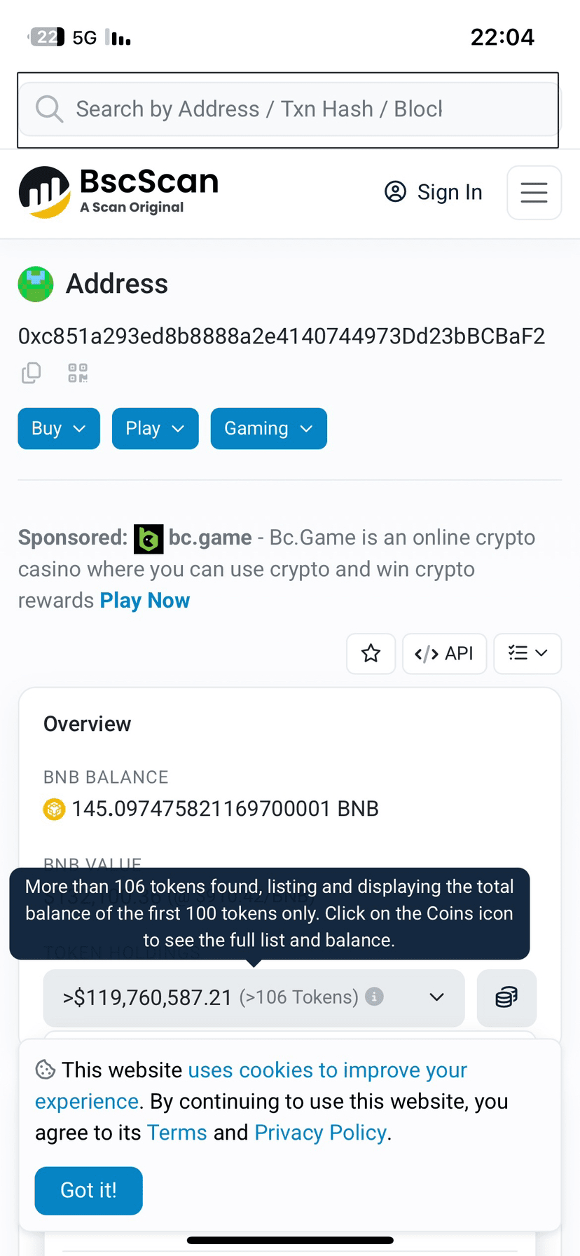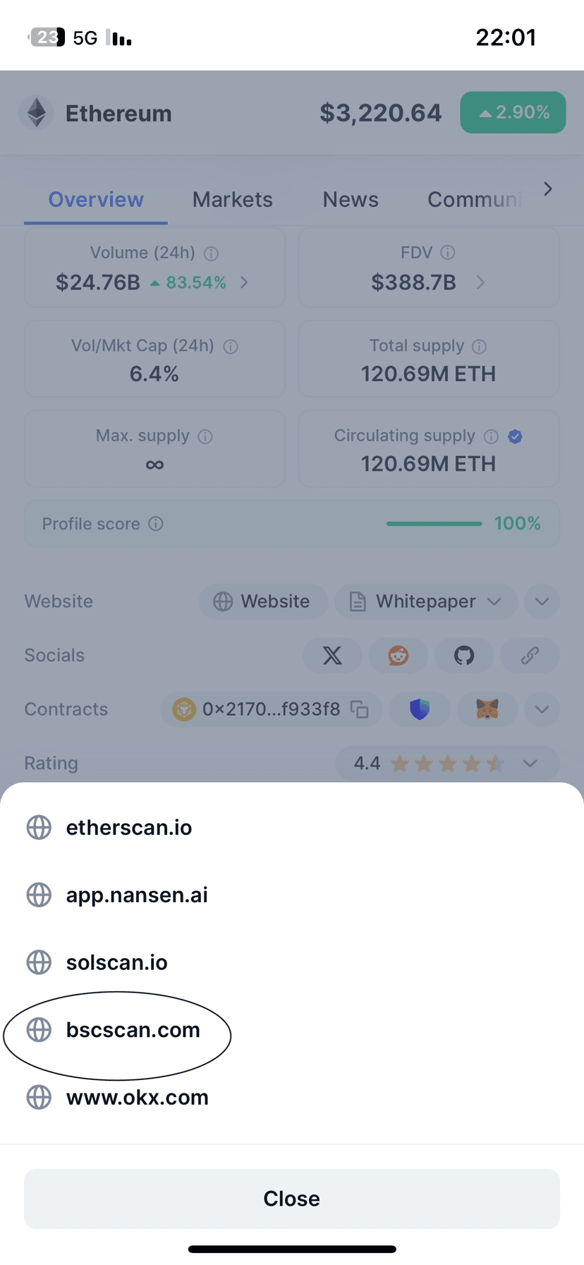 Verranno visualizzate diverse pagine, seleziona BscScan.