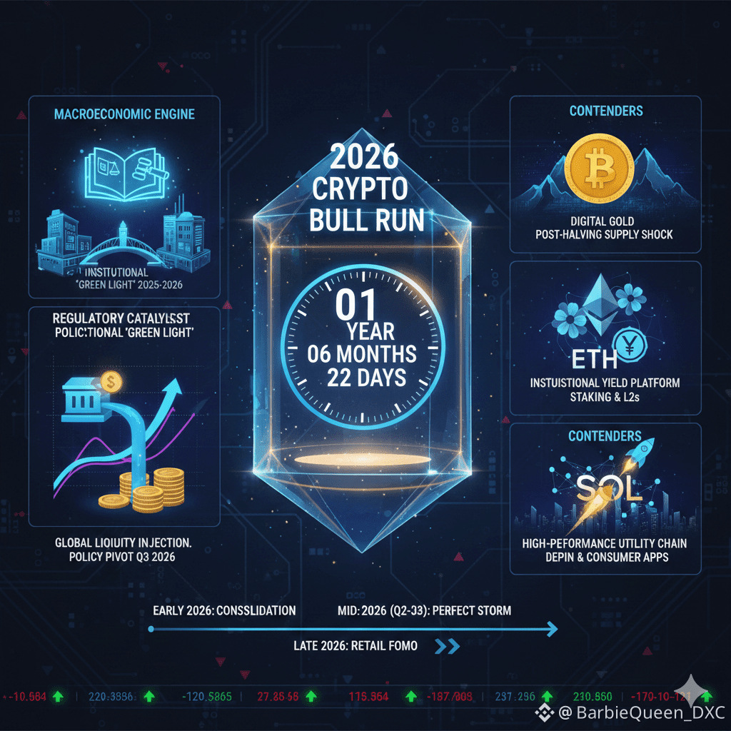 2. Mid-2026 (Q2-Q3): The convergence of clearer regulation, a demonstrably dovish central bank pivot, and positive on-chain metrics (rising active addresses, declining exchange reserves) creates a "perfect storm" of bullish sentiment. This period marks the most likely launch window for a sustained bull run.
