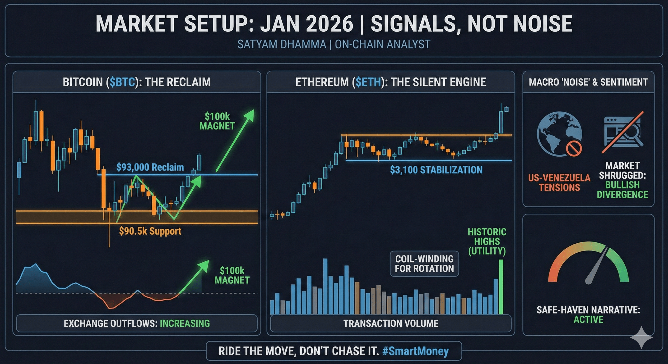Il livello: Stabilizzare al di sopra di 3.100 $ è fondamentale. Stiamo osservando uno spostamento strutturale dall'accumulo all'espansione iniziale.