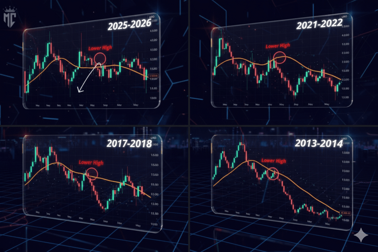 Se Bitcoin ritesta nuovamente la media mobile a 200 giorni durante un anno di metà mandato, il dubbio è giustificato. Ignorare questa combinazione si è rivelato costoso in cicli precedenti.