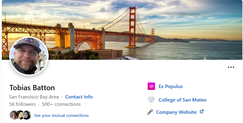 Tobias Batton è un dirigente di marketing e prodotti digitali da 20 anni che ha fondato 3 società e ne è uscito con successo da 2. Prima di entrare in Ex Populus, Barton ha realizzato quasi 1 miliardo di installazioni di app per i principali editori di giochi per dispositivi mobili con la sua piattaforma di pubblicazione e fidelizzazione Signal Zero. Nel 2012, è stato assunto da Emerge Digital Group per creare una divisione mobile, che ha aiutato Emerge a diventare una delle aziende in più rapida crescita negli Stati Uniti (n. 8 sulla Inc. 500). Prima di questo, Barton è stato invitato a costruire un sistema di tracciamento degli eventi in tempo reale e un motore di ricerca temporale Live Matrix, che è stato successivamente adottato da Facebook ed è diventato la base di Facebook Live.