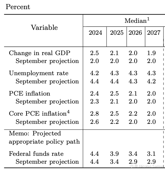 Prévisions de la FED pour les 2 prochaines années (chômage, croissance, inflation) :