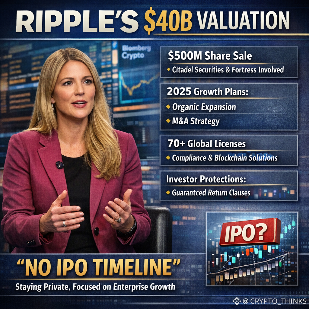 Her message was straightforward: Ripple plans to remain private, with no IPO timeline.
