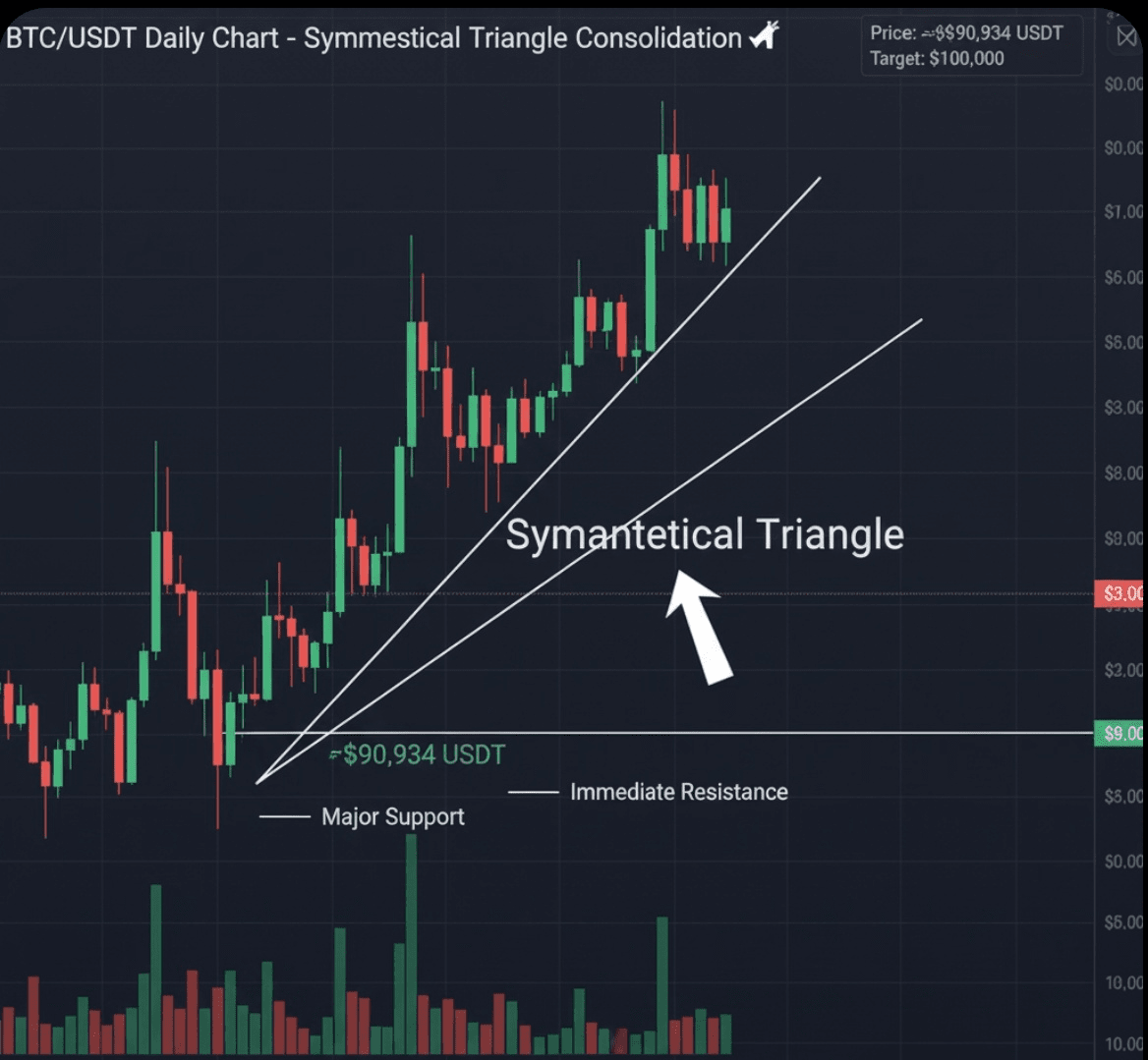 * Modello: Triangolo Simmetrico. Dopo l'aumento a $94k, BTC sta formando un triangolo di restringimento. Questo modello di solito si traduce in un'esplosione violenta una volta raggiunto l'"apice".