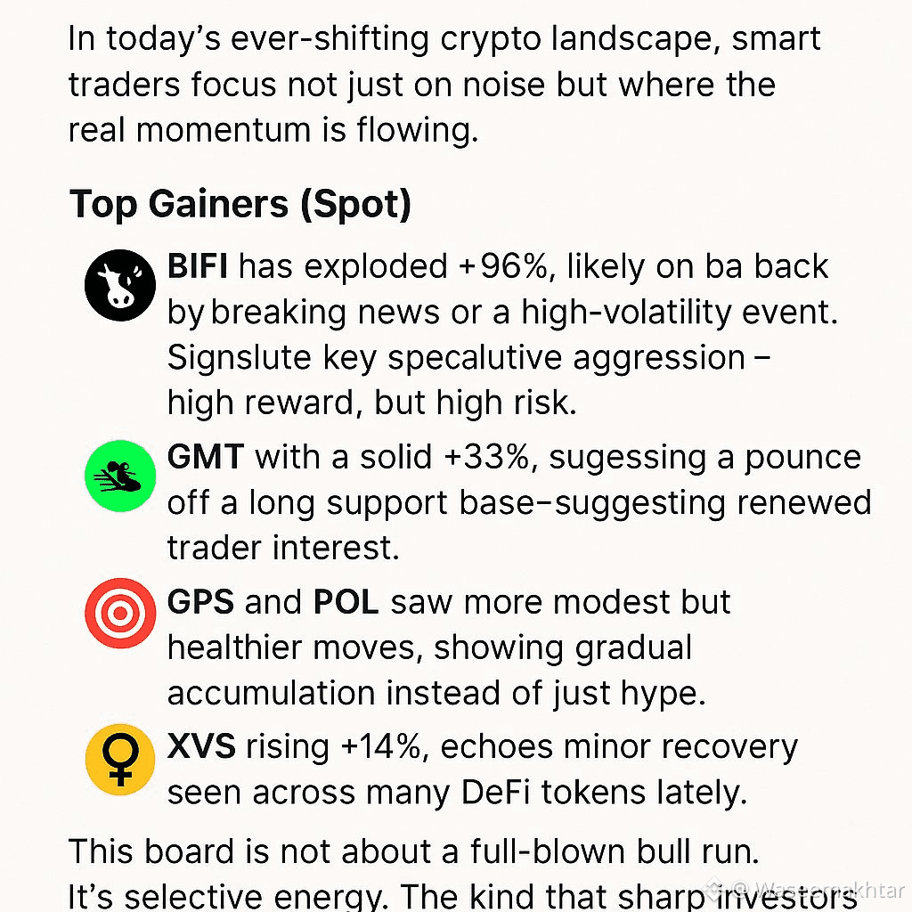 In today’s ever-shifting crypto landscape, smart traders focus not just on noise but where the real momentum is flowing. The Top Gainers (Spot) list reveals just that — the pulse of short-term moves: