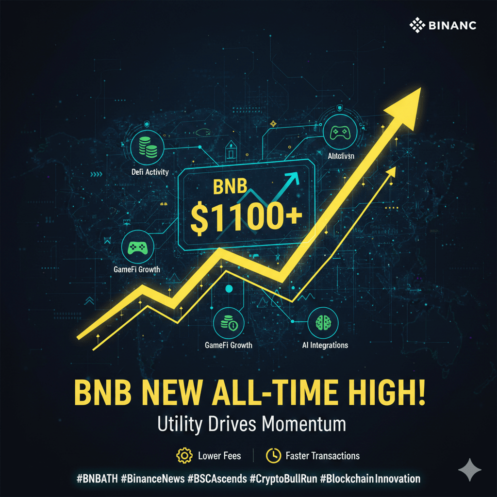 $BNB ha ufficialmente superato i 1.100 dollari, segnando un nuovo massimo storico e indicando una forte fiducia nell'ecosistema Binance 💛