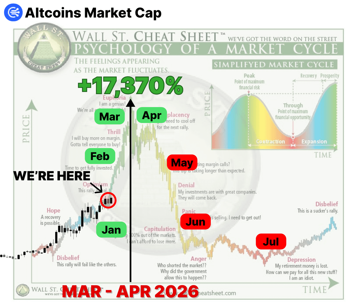 Marzo | Rotazione del capitale: mentre Bitcoin si stabilizza a valutazioni più elevate, entra in gioco l'"effetto ricchezza". I profitti da BTC iniziano a riversarsi in altcoin di media e grande capitalizzazione (ETH, SOL). Questa è l'"Altseason" che tutti aspettano—guadagni parabolici diventano la norma quotidiana.