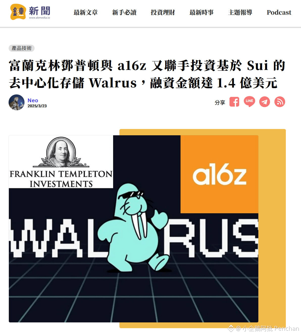 Walrus 在 2025 年 3 月完成融資,金額高達 1.4 億美元