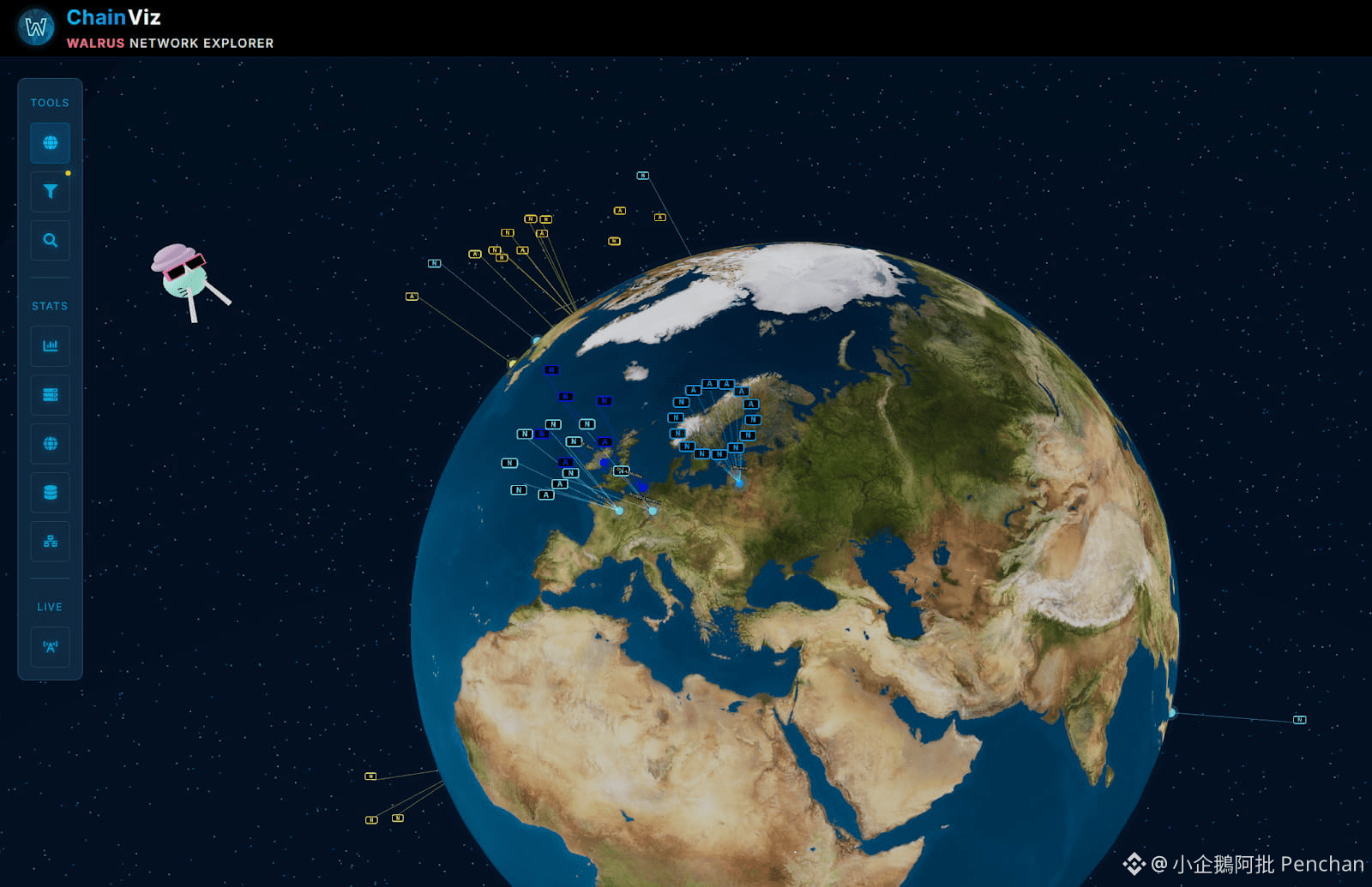 ChainViz 網站收集了全球的 Walrus 節點,主要集中在歐洲、北美及新加坡