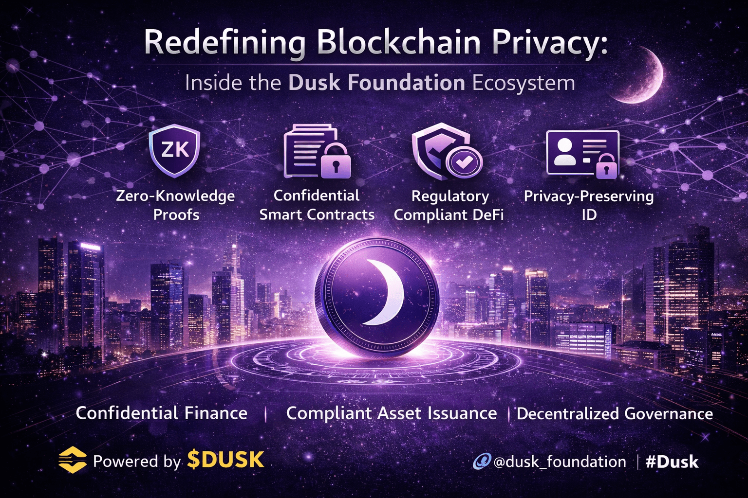 Questa capacità consente ai regolatori di esercitare supervisione mentre gli utenti mantengono il controllo sulle loro informazioni sensibili, creando un ambiente equilibrato in cui trasparenza e discrezione coesistono. Il $DUSK token gioca un ruolo centrale nel mantenere questo ecosistema, alimentando staking, governance e sicurezza della rete, allineando gli incentivi tra validatori, sviluppatori e utenti. Attraverso lo staking, i partecipanti aiutano a garantire la sicurezza della rete, mentre i meccanismi di governance consentono alla comunità di influenzare gli aggiornamenti del protocollo e la direzione a lungo termine. Man mano che le normative globali sui beni digitali continuano a maturare, i progetti blockchain che progettano proattivamente tenendo conto della conformità sono destinati a distinguersi. L'approccio di Dusk dimostra che la regolamentazione non deve soffocare l'innovazione e che la privacy non deve essere sacrificata per la legittimità. Oltre alla finanza, la tecnologia sottostante apre anche porte a applicazioni come il voto riservato, la condivisione di dati privati e soluzioni di identità decentralizzate, espandendo la rilevanza della rete ben oltre un singolo settore. Piuttosto che competere solo su velocità o hype, Dusk Network sta costruendo un'infrastruttura durevole destinata a supportare l'adozione istituzionale per gli anni a venire. In un ambiente in cui fiducia, riservatezza e conformità stanno diventando sempre più importanti, Dusk offre un piano convincente per il futuro della tecnologia blockchain. Per utenti, costruttori e istituzioni che cercano una rete che rispetti la privacy pur abbracciando la realtà normativa, Dusk si distingue come una soluzione seria e orientata al futuro.