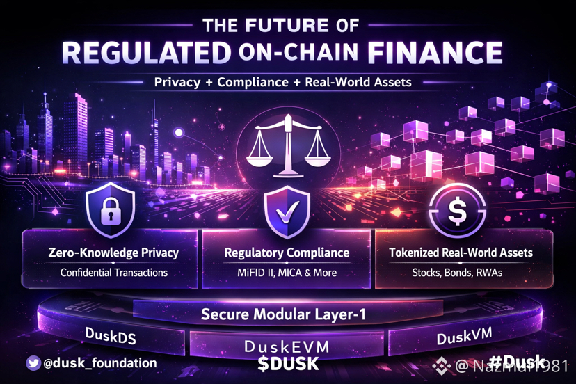In a world where blockchain innovation races forward, @dusk_foundation stands out by tackling one of the most critical frontiers in crypto adoption â regulated finance with built-in privacy and compliance. Dusk is not just another Layer-1 chain; itâs a privacy-enabled infrastructure designed from the ground up for the issuance, settlement, and trading of regulated real-world assets (RWAs) like stocks and bonds, under frameworks such as MiFID II, MiCA, DLT Pilot Regime, and GDPR.