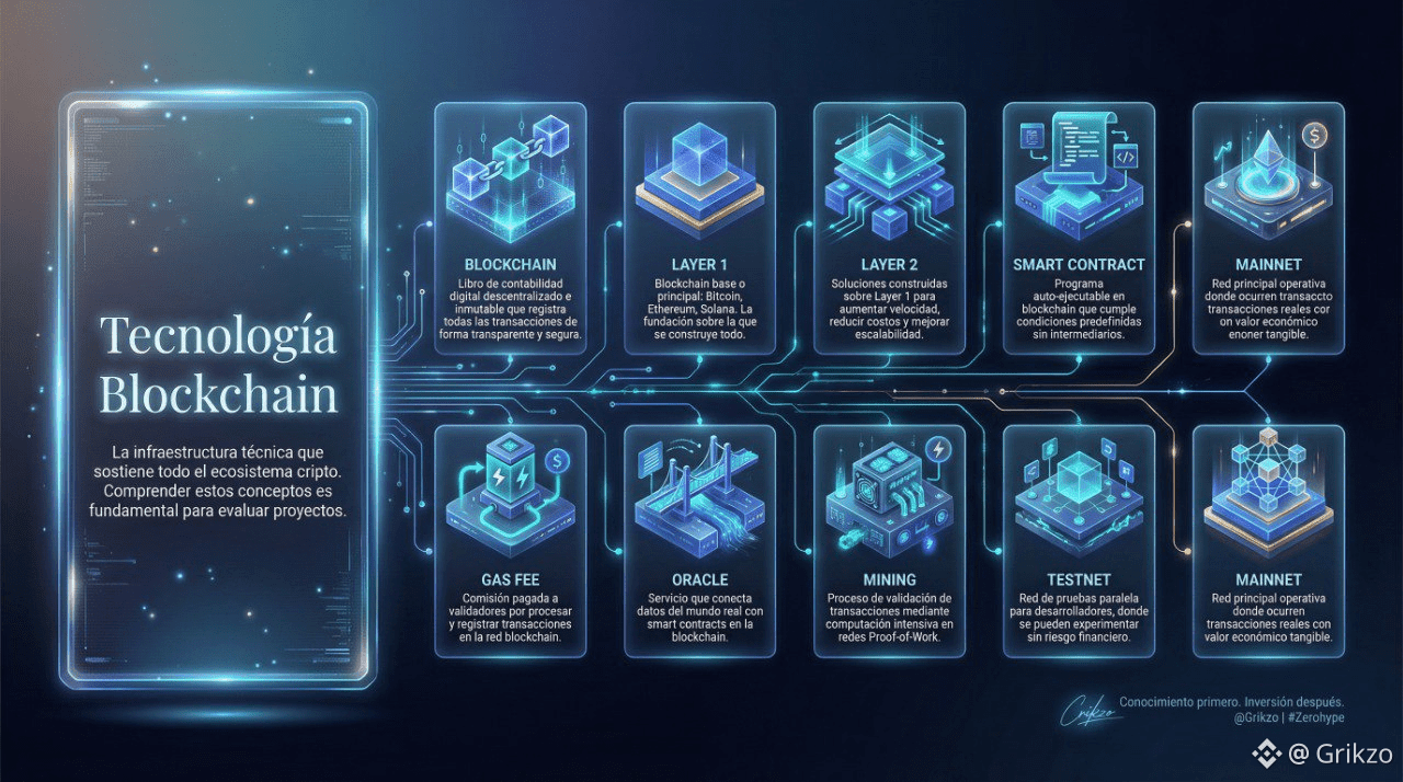 Cuarta entrega del #CryptoGlosario: hoy exploramos "Tecnología Blockchain" - los conceptos que determinan si un proyecto es viable, seguro y escalable a largo plazo.
