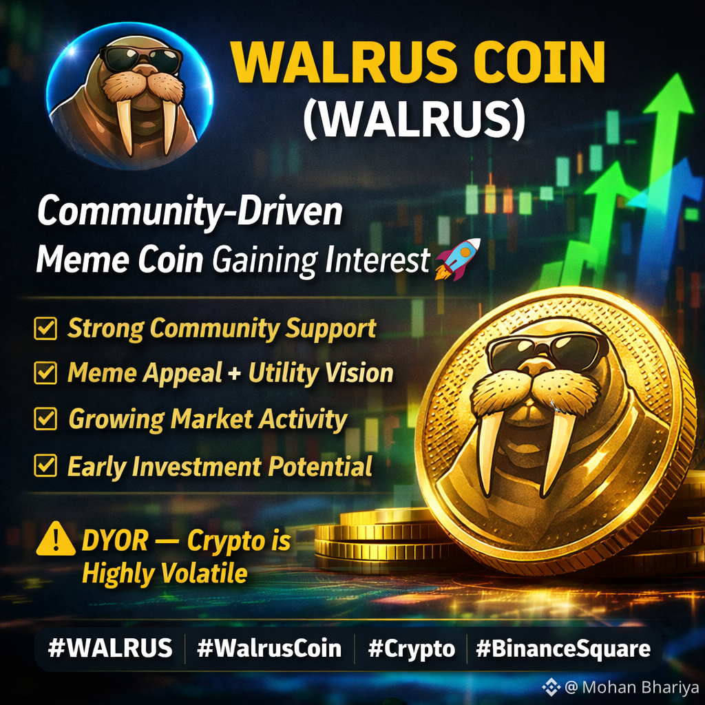 $WAL Walrus Coin (WALRUS) is an emerging cryptocurrency that combines meme culture with strong community participation. Inspired by the walrus — a symbol of strength, unity, and resilience — this project aims to build a fun yet value-focused digital asset.
