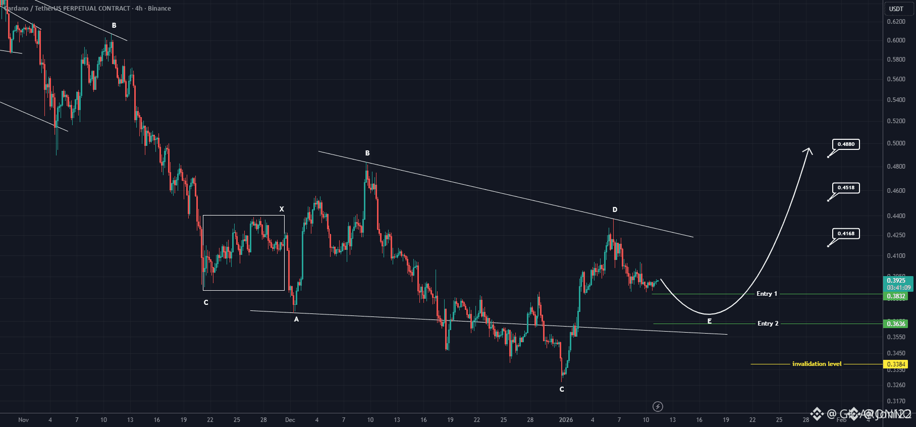 From a structural perspective, Cardano (ADA) seems to be forming a double correction, connected by an X-wave, linking the two corrective patterns together. The second correction, in particular, appears to take the form of a triangle, and we are currently observing Wave E of this triangle. Once Wave E completes, we can reasonably expect this double correction to conclude, setting the stage for a potential bullish move in Cardano.
