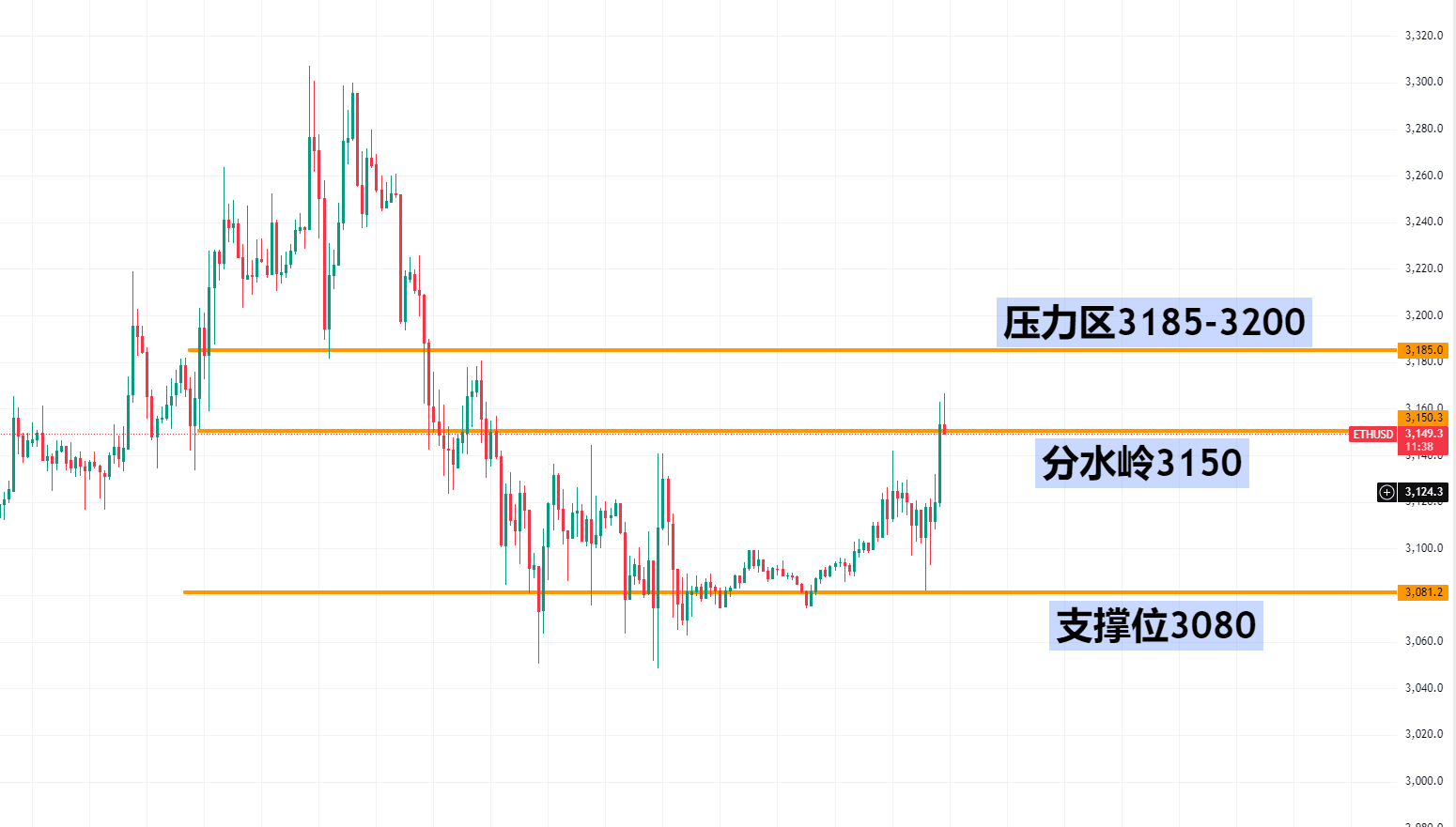 分水岭:3150(要关注小时级别能否站稳这里)