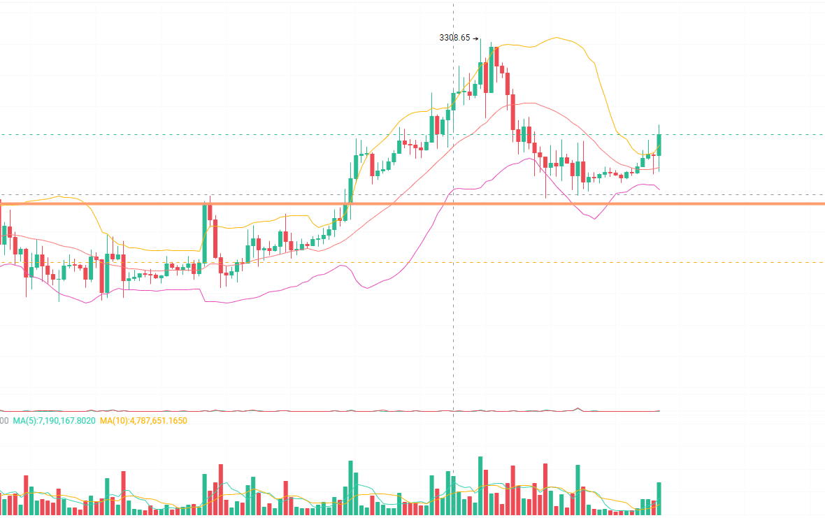 从1小时线看,ETH目前站上3160附近,像是从坑里爬出来喘了口气,短线结构有小幅走强的迹象。但如果拉长周期看,上方3180—3200区域压力重重,就像爬坡爬到一半,前面突然堵了一排大石头。
