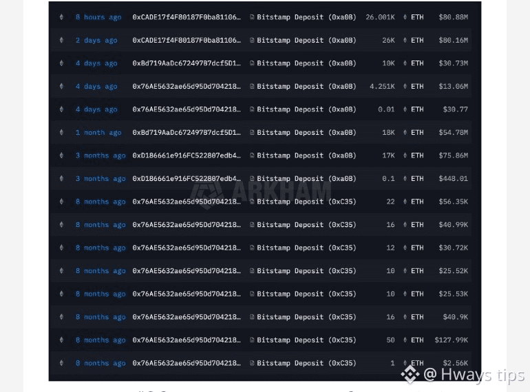 These latest transfers follow a pattern of gradual deposits that began much earlier. Arkham data indicates that the investor initially sent a total of 137 ETH to Bitstamp approximately eight months ago.