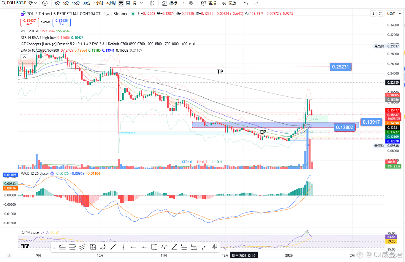 🚀今日推荐:POL(日线图,现价≈0.1567)