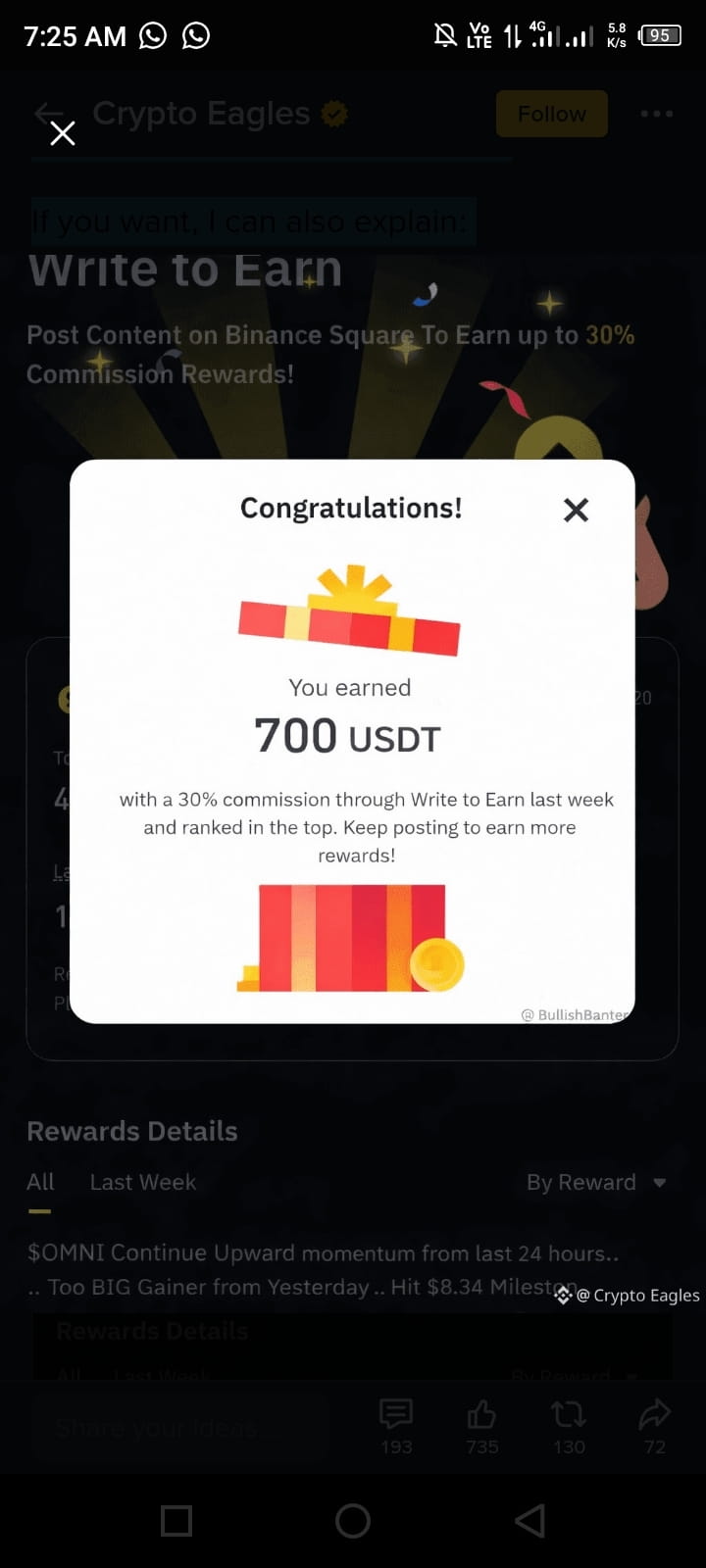 $4 di ricompensa per tutti nel primo post in evidenza. Accedi all'account e congratulazioni! 👌 Oh... da $0 a $100 in 24 ore