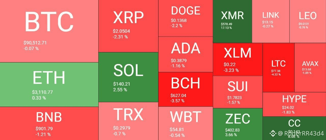 · $ETH se mantiene firme, con una leve subida del +0,33% (USD 3.110).