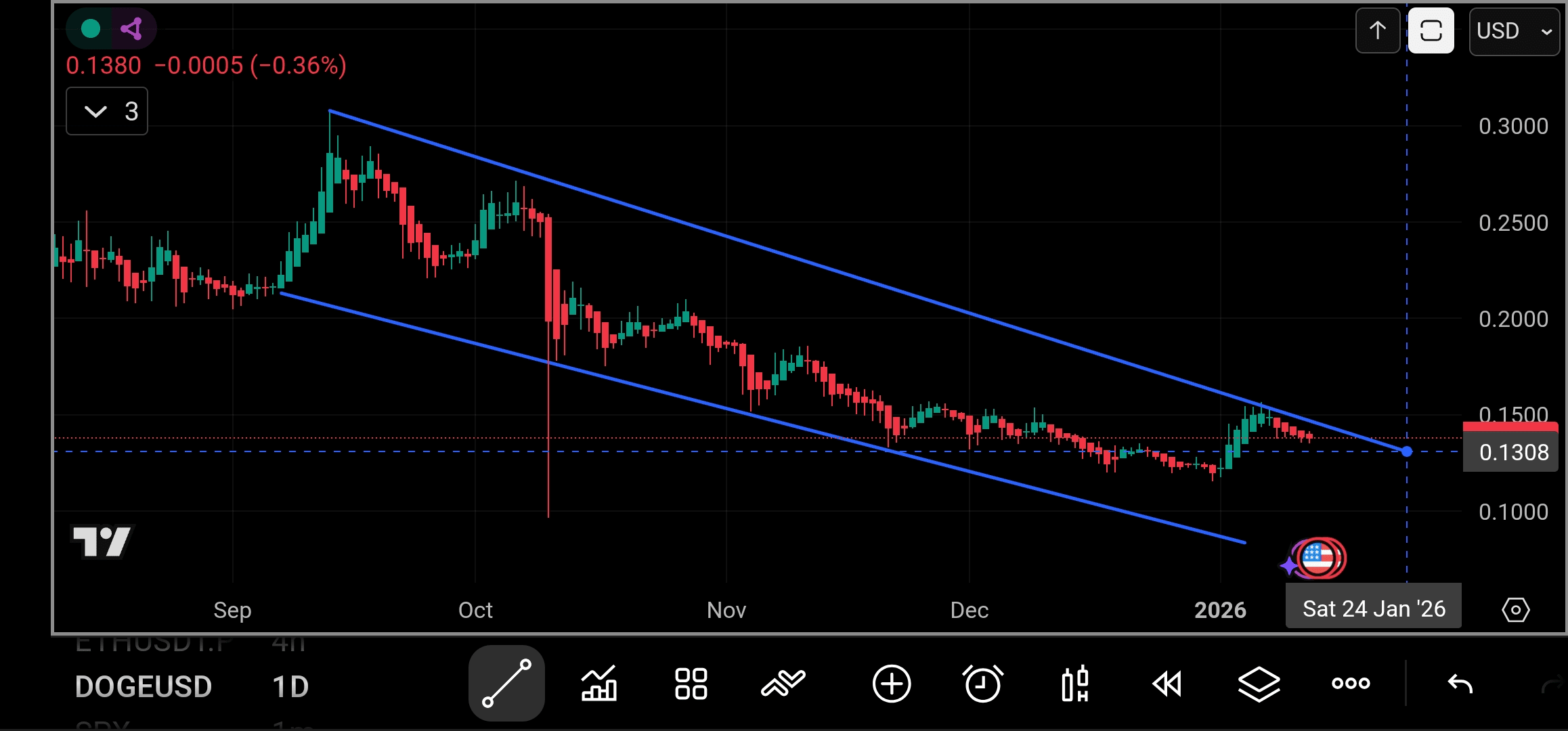 All'12 gennaio 2026, Dogecoin ($DOGE) è quotato intorno a 0,137 dollari, con un aumento modesto dello 0,5% nelle ultime 24 ore, ma una flessione del 7% nell'ultimo periodo settimanale, in un contesto di consolidamento generale del mercato. Con una capitalizzazione di mercato di circa 20,5 miliardi di dollari, DOGE si colloca tra le prime 10 criptovalute, grazie alla sua fedele comunità e alle occasionali endorsement di figure come Elon Musk. Il volume di scambi nelle ultime 24 ore si attesta a 1,2 miliardi di dollari, indicando un interesse costante nonostante la volatilità.