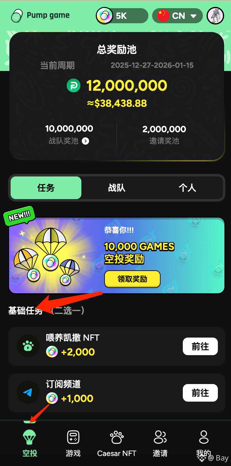 只要完成指定任务,就能获得 $GAMES 积分,用于后续 个人 & 战队空投分配。