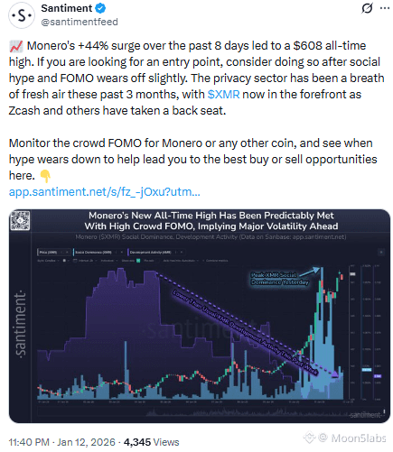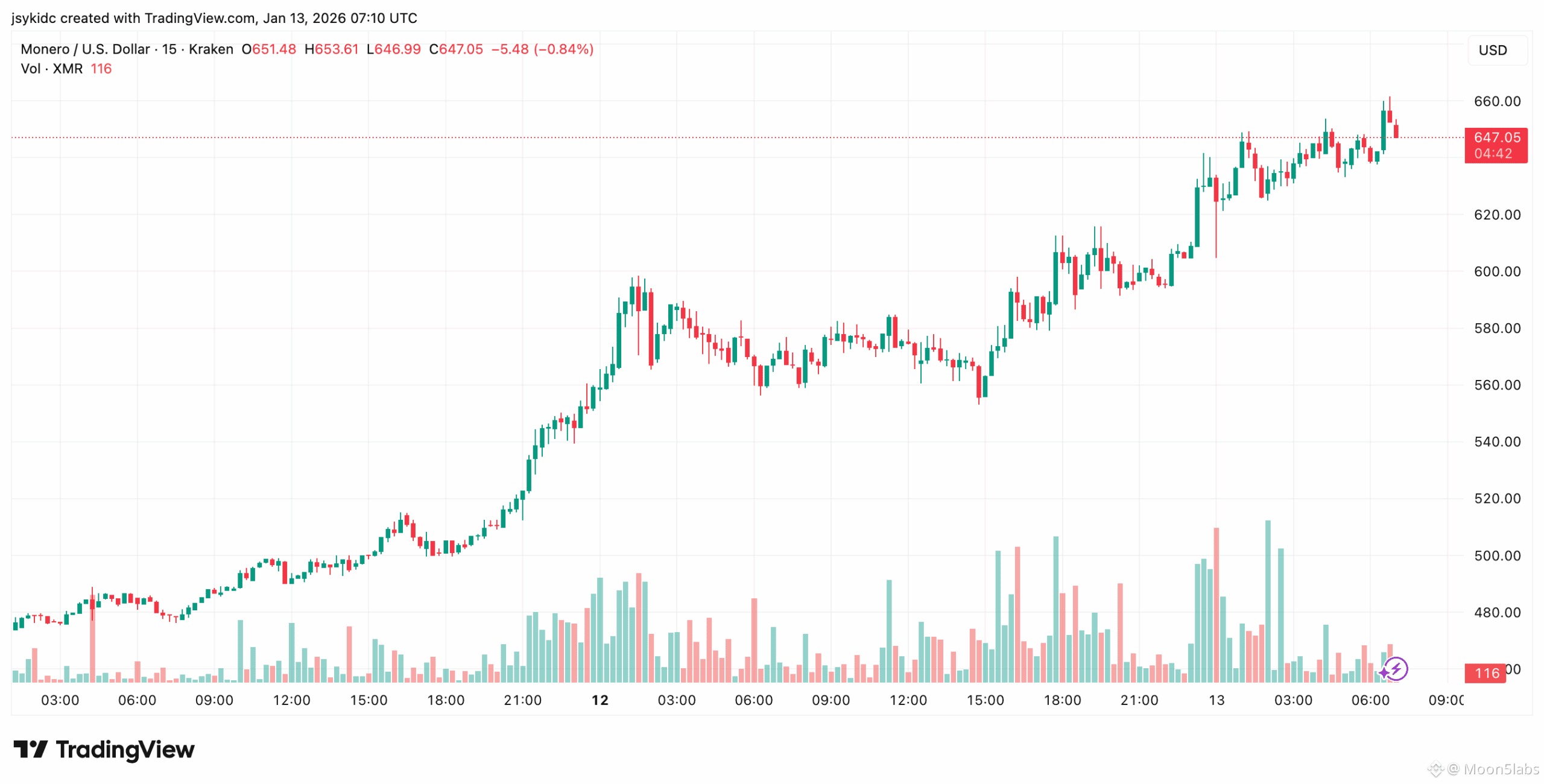 Monero, widely known for its strong transaction privacy, has staged an extraordinary rally in recent days. According to data from analytics platform Santiment, XMR has surged by more than 44% over the past week and a half, pushing prices to just under $657.