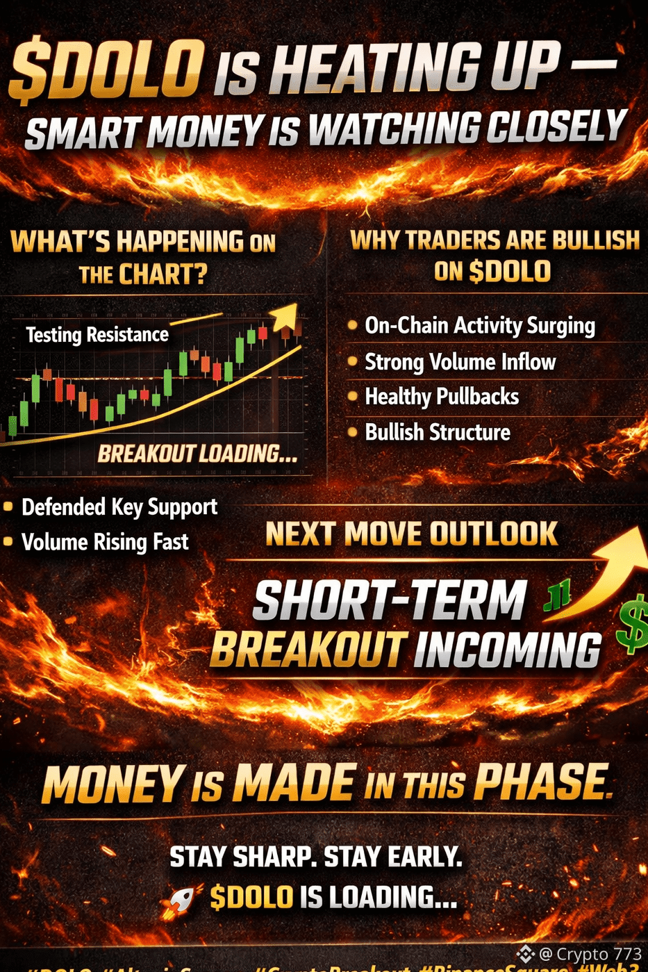 If current momentum continues, $DOLO is positioned for a short-term breakout, followed by a push toward higher liquidity zones. Once that happens, FOMO traders will rush in — but by then, early buyers will already be in profit.