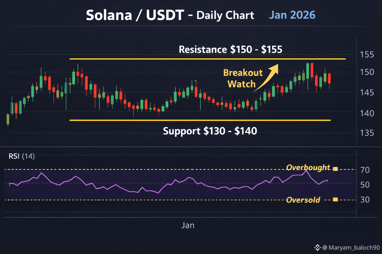 $SOL Solana (SOL) has recently been showing range-bound price action as the broader crypto market consolidates. After testing support levels around $130–$140, $SOL has attempted to reclaim higher zones, but resistance near $150–$155 continues to cap the upside. Short-term traders are watching these levels closely, as a strong break above resistance could fuel renewed bullish momentum.