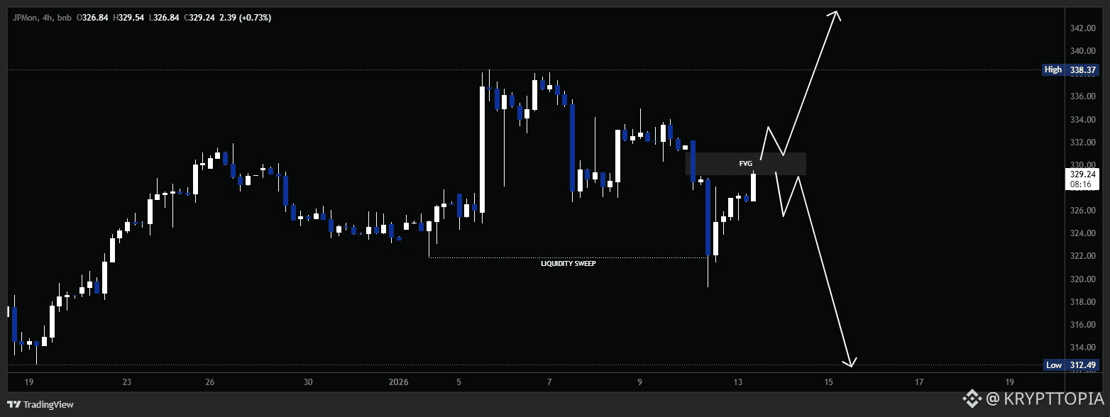 From my chart, JPM recently swept downside liquidity and bounced strongly. Price is now reacting around a fair value gap (FVG). This zone feels like a decision area: either continuation toward recent highs, or a pullback if earnings disappoint.