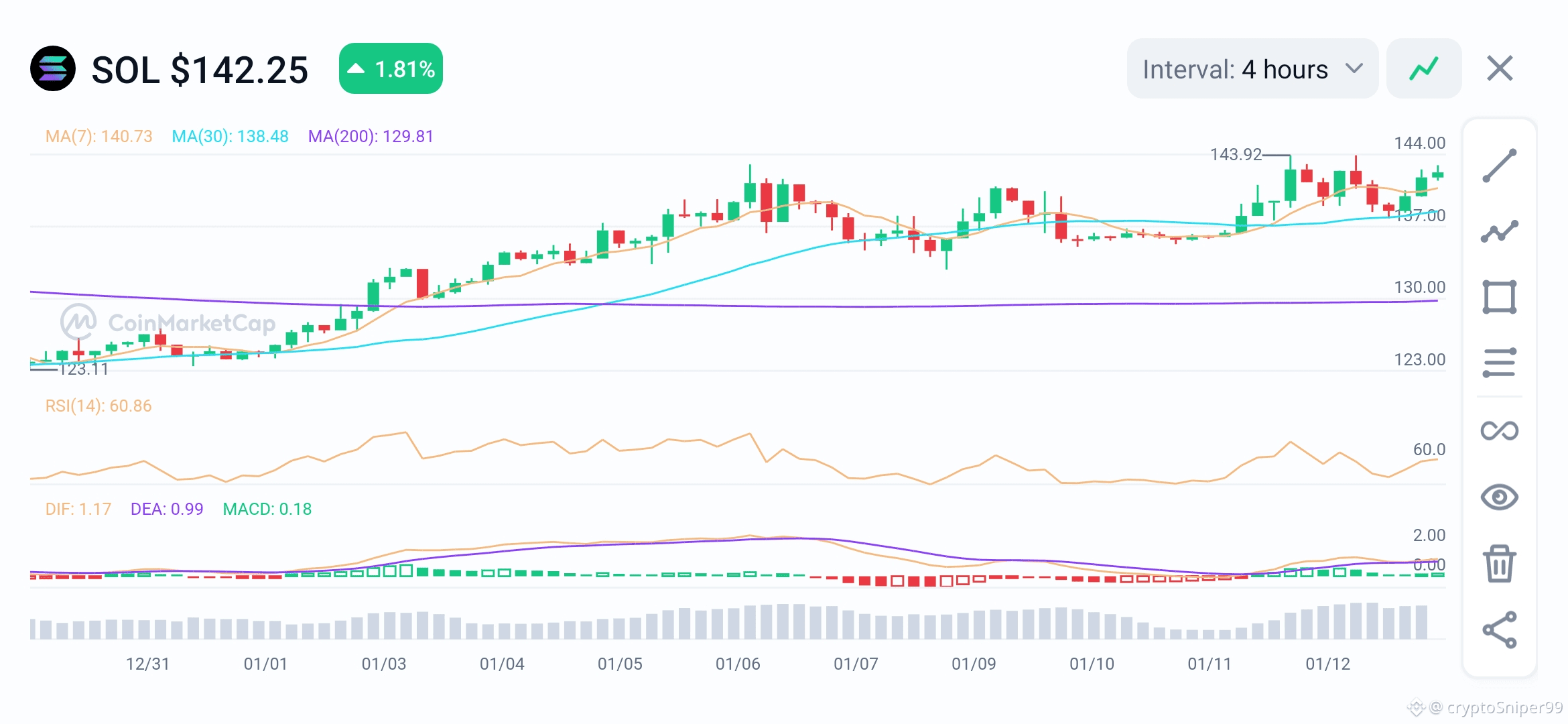 As of January 13, 2026, Solana (SOL) is trading at approximately $139.21, demonstrating a resilient recovery with a 2.46% gain in the last 24 hours. The token has recently found strong support in the $134–$136 demand zone, attempting to break through significant overhead resistance near the $145–$150 range.