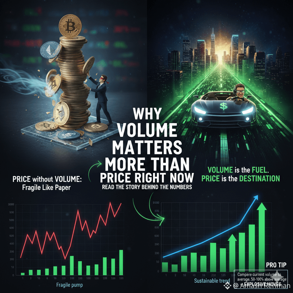 Price shows where the market is, but volume tells us where the smart money is moving. A coin can spike in price, but without strong volume backing it, that move is fragile like a paper tower in a storm. Conversely, rising volume signals conviction: it shows traders are actively buying or selling, and momentum is real.