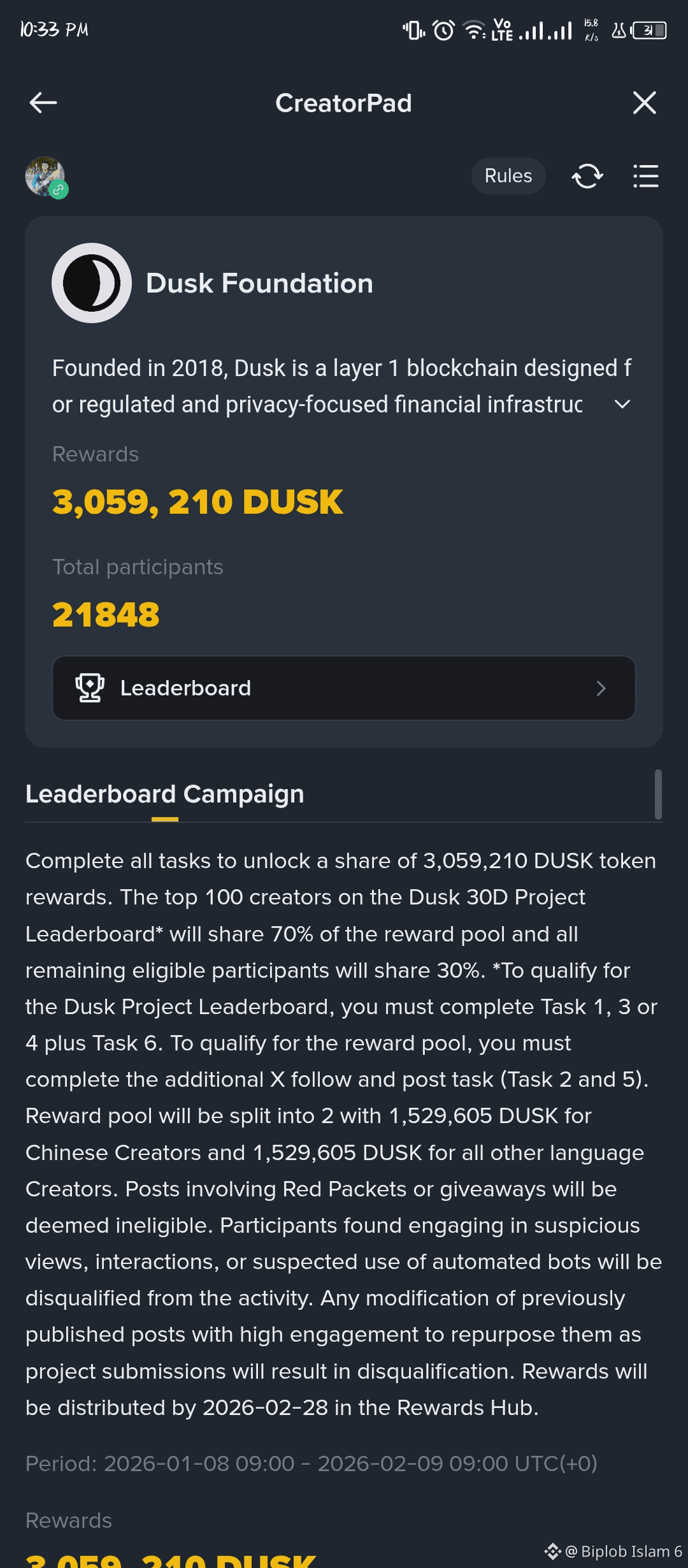 Creating & Earning on Binance Square with $DUSK