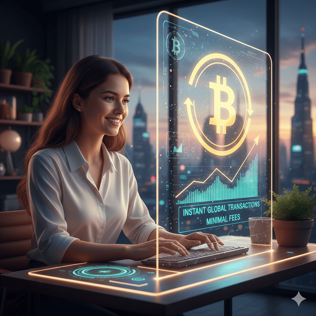 Con Bitcoin, Sarah poteva inviare e ricevere pagamenti istantaneamente, oltre confine, con commissioni minime. "È un cambiamento radicale!" esclamò. Il suo business fiorì, raggiungendo clienti in tutto il mondo. BTC le offrì libertà finanziaria e controllo, libera dagli intermediari. Non era solo una moneta; era una rivoluzione, che dava potere a persone come Sarah di partecipare a un'economia globale decentralizzata. Il futuro era qui, e era digitale.