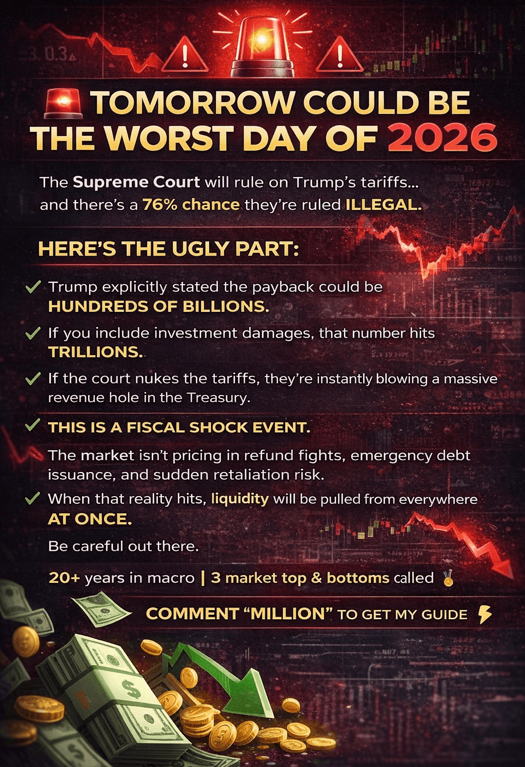 Una sentenza della Corte Suprema sulle tariffe dell'era Trump è imminente — e i mercati stanno sottostimando enormemente il rischio.