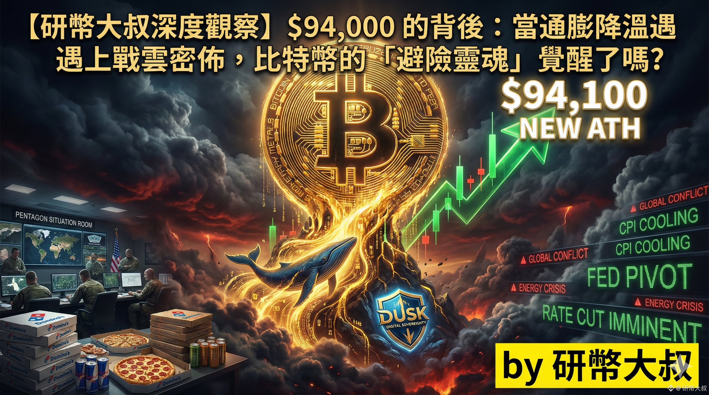 這兩天我們的視角在五角大廈的披薩盒與波斯灣的撤離令之間切換,氣氛緊繃到了極點。但弔詭的是,在戰爭倒數計時的陰影下,螢幕上的比特幣卻拉出了一根強勁的長紅棒,站穩了 94,000 美元關卡。很多人在問:難道幣圈真的無視戰爭風險嗎?還是這背後有一套更深層的邏輯?今天大叔就幫大家拆解這場「數據利好」與「地緣危機」交織的瘋狂行情。