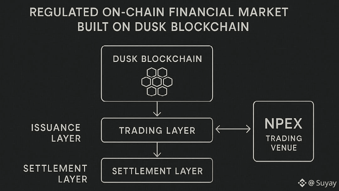 NPEX se presenta como un venue orientado a la negociación de activos digitales regulados. La decisión de construir su infraestructura sobre Dusk no es casual. Responde a una arquitectura diseñada específicamente para servir como base de mercados donde privacidad, control, liquidación y emisión pueden coexistir dentro de un marco formal.