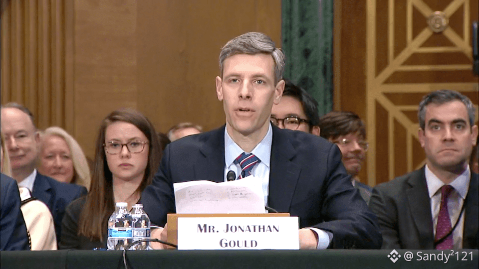 Jonathan Gould speaking at a nomination hearing before the Senate Banking Committee in March. Source: Senate Banking Committee