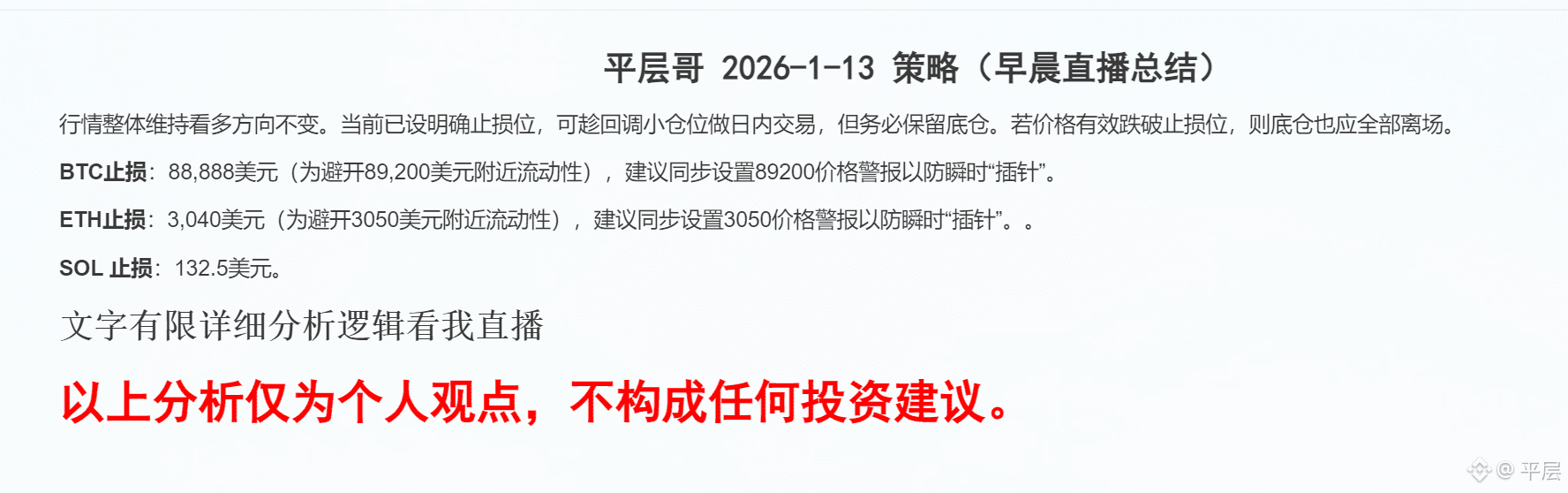 设置明确止损保护:BTC 88400 / SOL 121.5 / ETH 2950