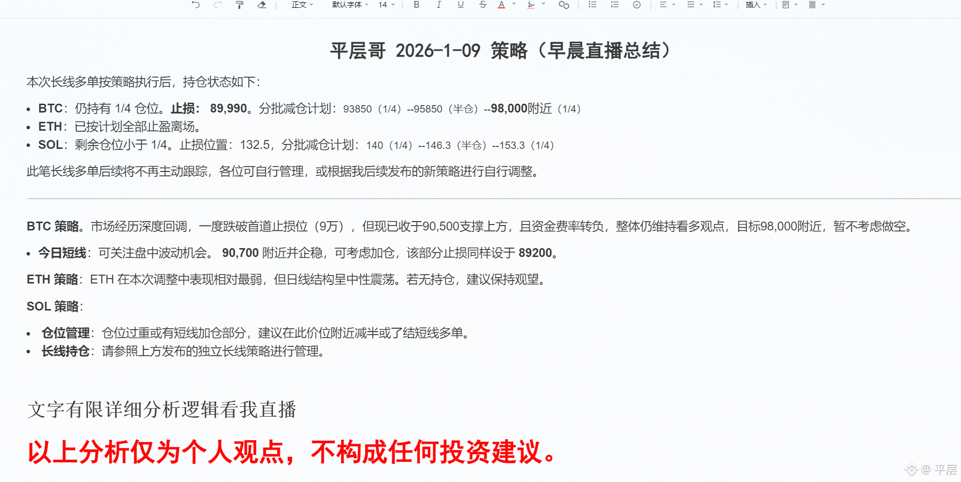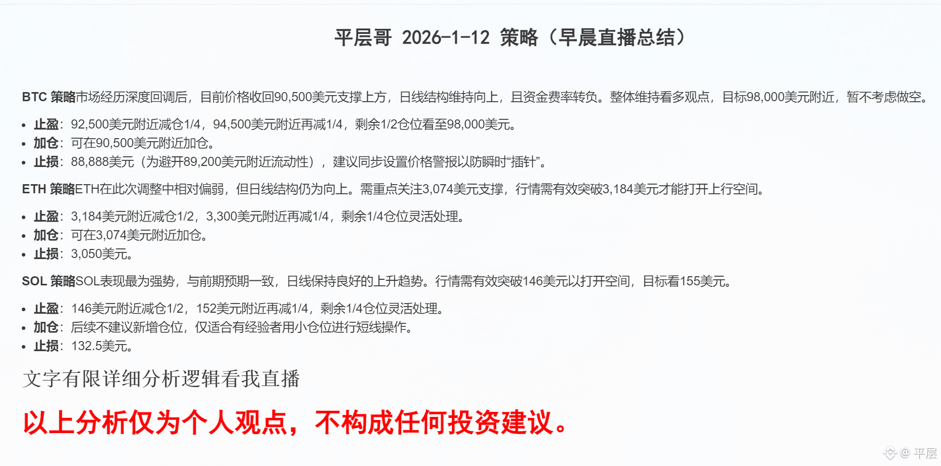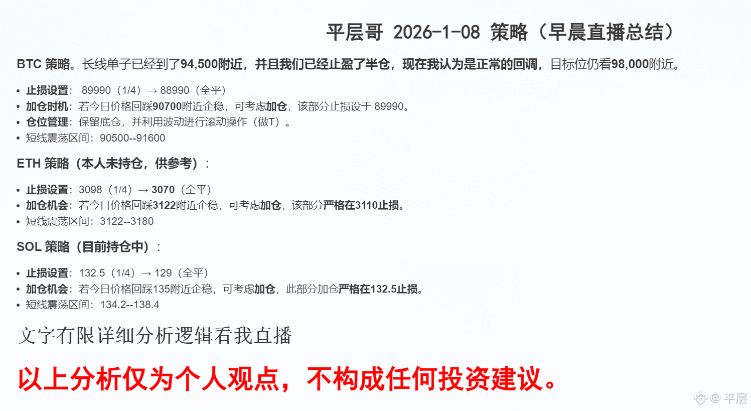 兄弟们好,平层哥这边来做一个近一个月的策略复盘。这轮行情经历了多次 "画门"洗盘、假突破诱空、圣诞假期缩量震荡,但我们始终坚持一个核心:看多不做空,严格止损,保留底仓滚动做T。