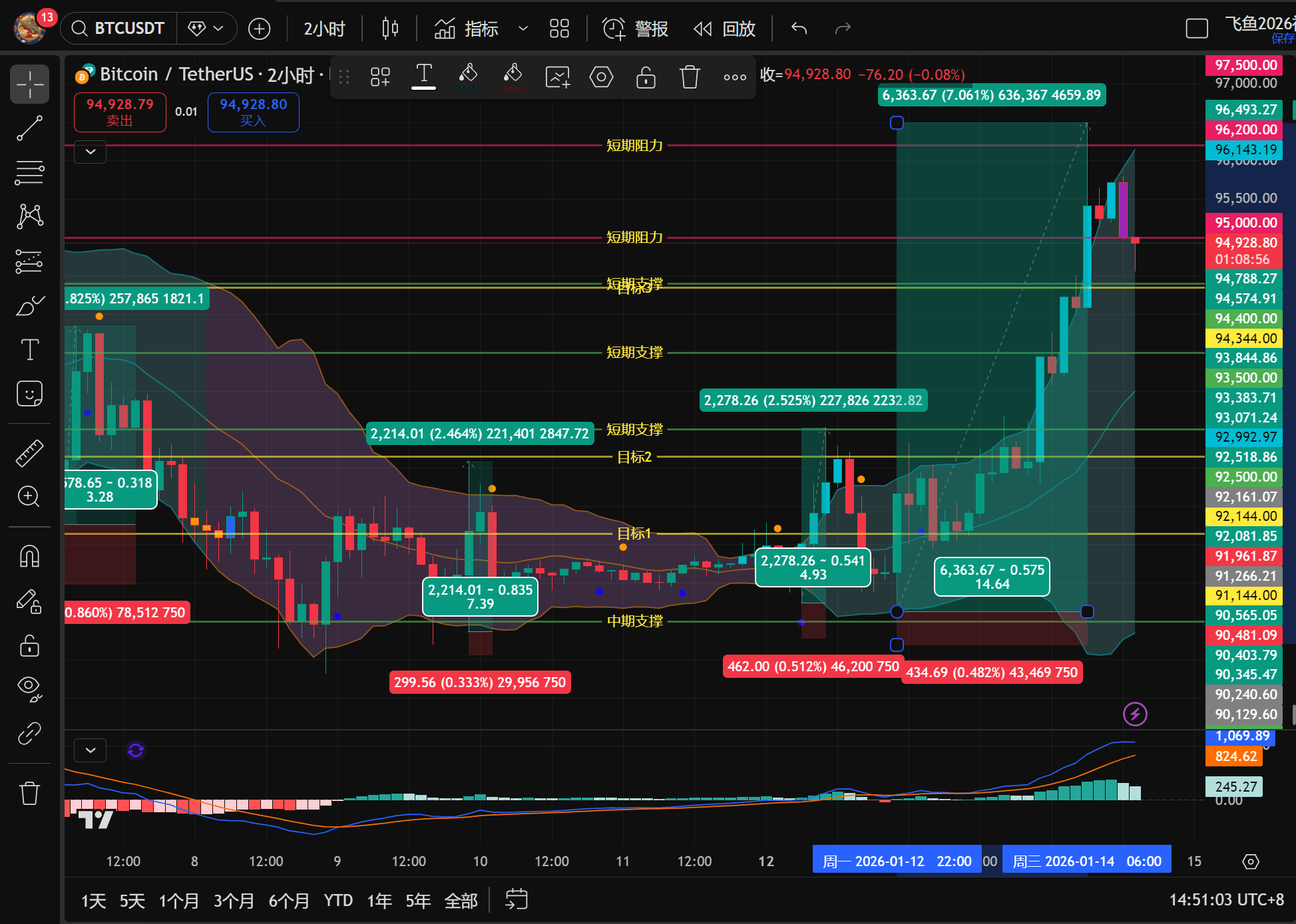 Logica attuale: l'area 94.400 - 94.500 è passata dal più forte 'soffitto' al 'pavimento' più resistente (inversione di supporto/resistenza). Finché non si ritrae sotto i 94.000 in giornata, l'obiettivo dei long è chiaro: stabilizzarsi sopra i 95k, puntare ai 98k e infine sfidare la soglia dei 100.000 alla vigilia del Capodanno cinese.