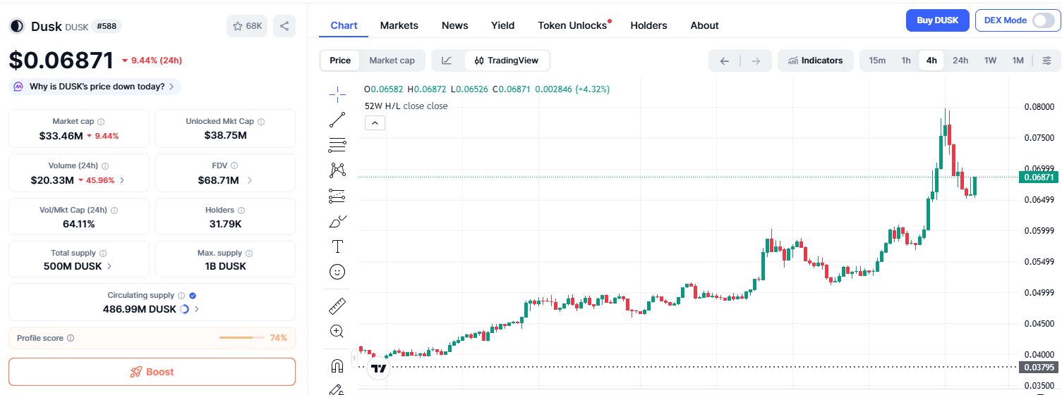 $DUSK Il token sta mostrando forza, non hype