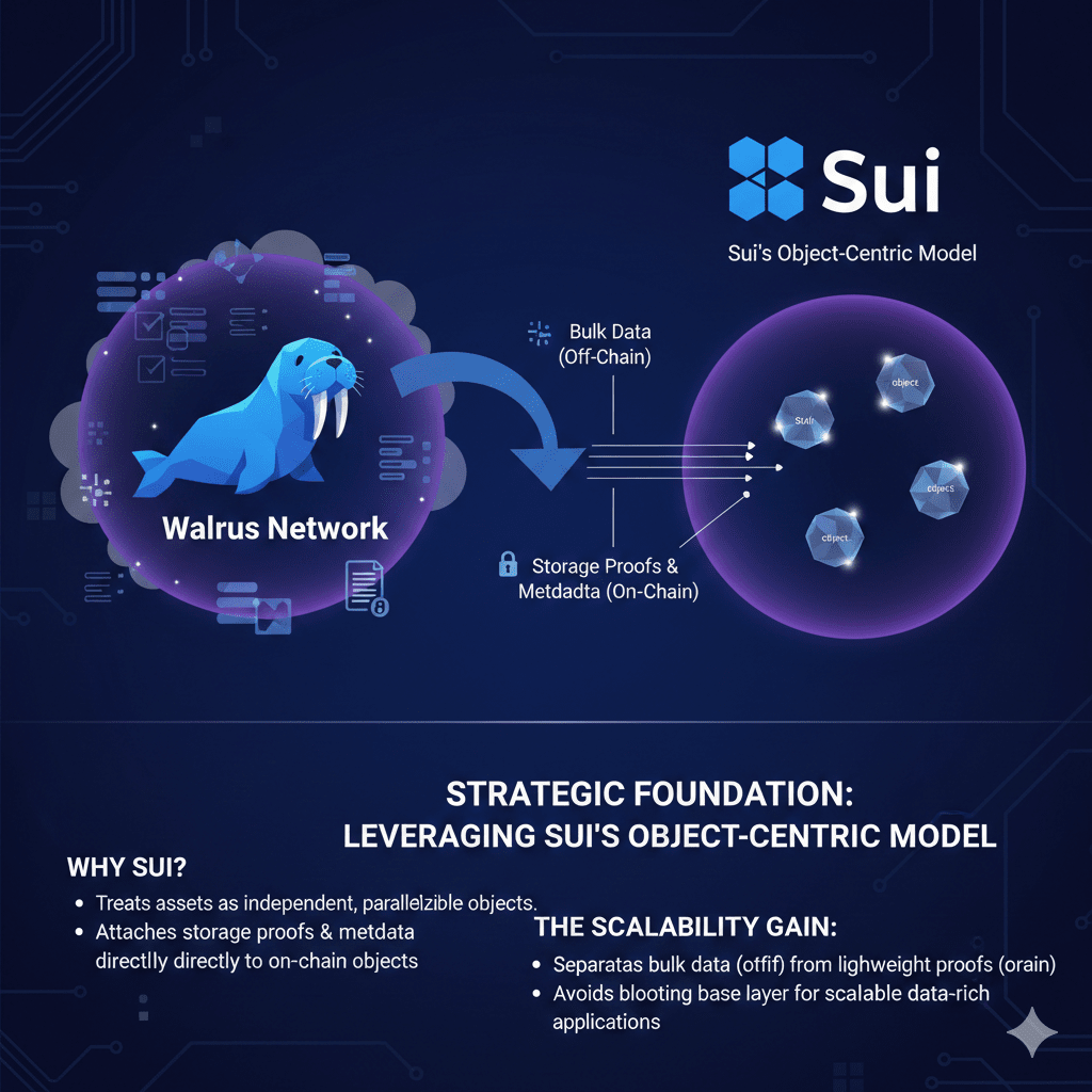 Walrus non è costruito in un vuoto; la sua integrazione con la blockchain Sui è un vantaggio architettonico fondamentale.