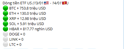 Gli ETF su Ethereum hanno attirato quasi 130 milioni di dollari, mentre gli ETF su altcoin come Solana, XRP... hanno registrato un flusso netto positivo.
