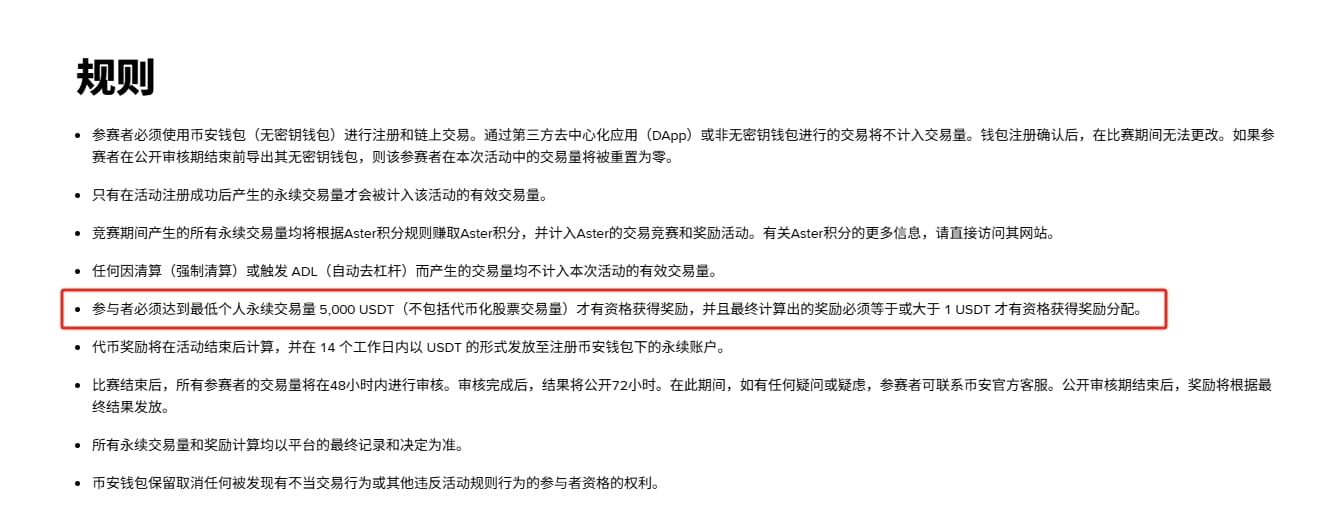 In primo luogo, l'airdrop dei token su Aster: il tuo volume di trading ti permetterà di accumulare punti settimanalmente, che potrai verificare direttamente su Aster. Alla fine dell'evento, i punti saranno convertiti direttamente in token Aster e inviati a tutti i partecipanti.