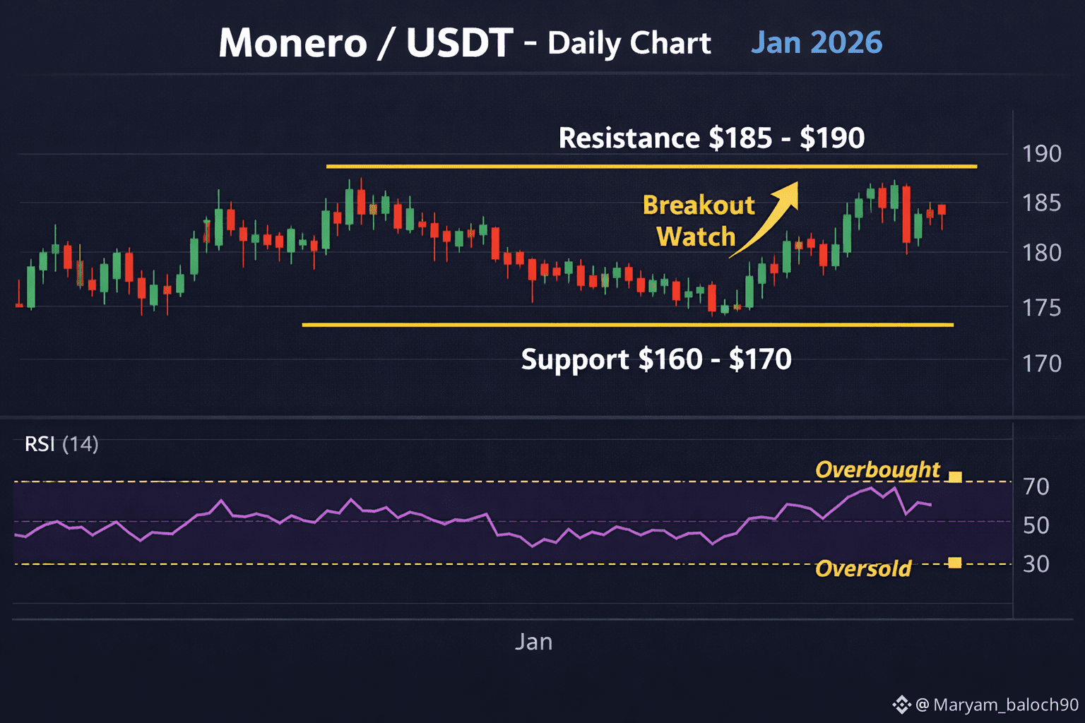 $XMR Monero (XMR), the leading privacy-focused cryptocurrency, has recently displayed range-bound movement as overall crypto markets consolidate. After bouncing off key support around $160â$170, $XMR has attempted several rallies but faces resistance near the $185â$190 zone. Traders are watching these levels closely â holding support could signal stability, while a break above resistance may indicate renewed bullish momentum.