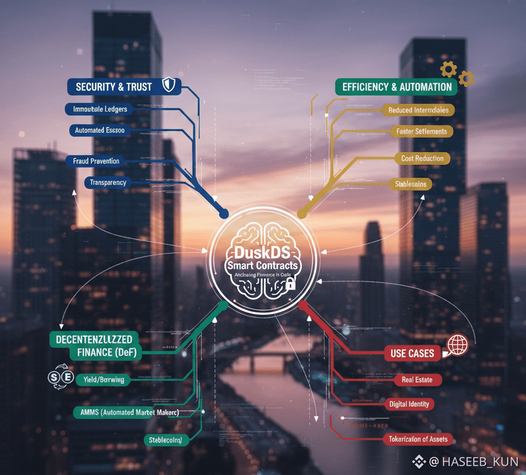 When I first began exploring DuskDS, I was struck by how quietly transformative it is. Most people associate smart contracts with flashy DeFi dashboards, speculative tokens, or flashy automated apps—but DuskDS is different. Here, smart contracts are the backbone, the hidden engine, the unglamorous but indispensable layer that ensures assets move, rules are enforced, and settlements finalize without a single misstep. It reminded me of the quiet efficiency of a central bank’s settlement system: unseen by most, but vital to everything that happens on top.