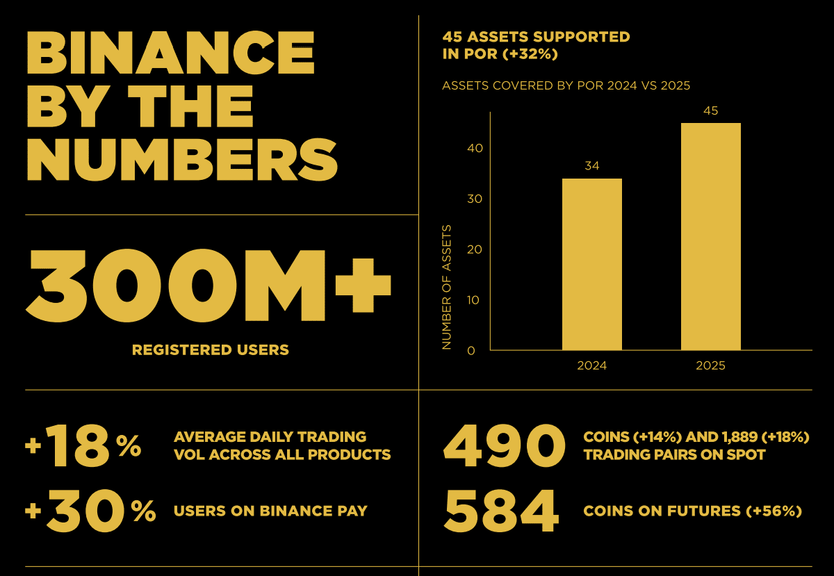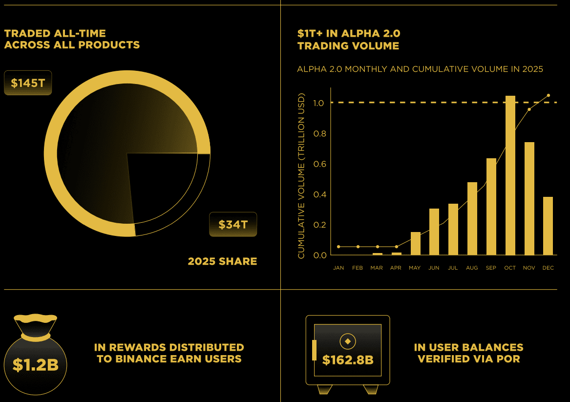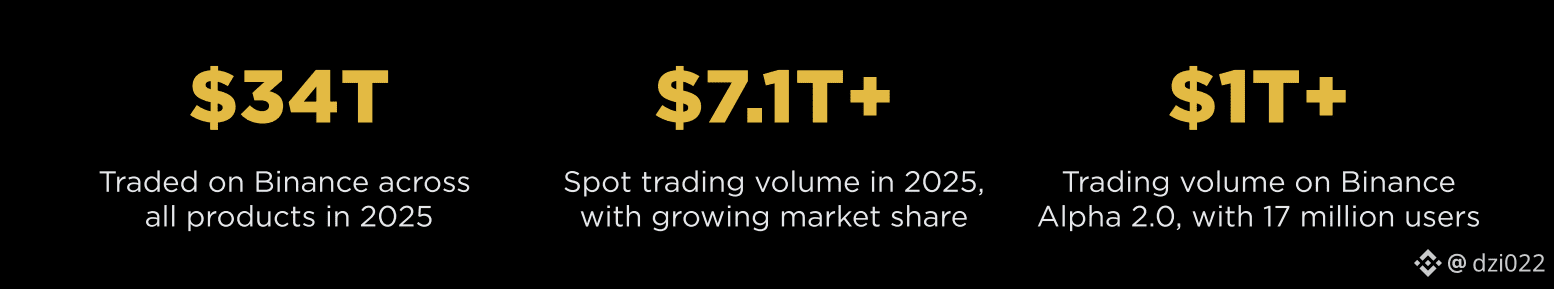 U 2025. godini, Binance je obradio više od $34 triliona u trgovanju preko svih proizvoda. Da stavimo to u perspektivu: to je više od BDP-a mnogih najvećih ekonomija sveta.