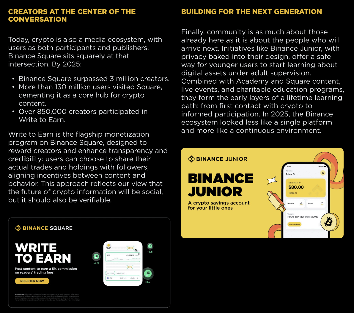 U 2025, Binance je lansirao Binance Junior — platformu dizajniranu za mlađe korisnike, sa privatnošću i sigurnošću ugrađenim u osnovu sistema.