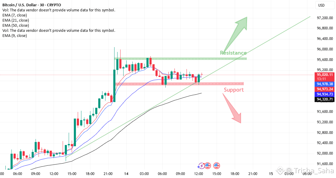 Short EMAs (7, 9, 21) are tightly aligned and sloping upward — showing buyers are in control in the short term.